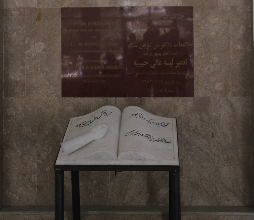 نشان لیسه حبیبیه (کتاب حک شده بر روی سنگ) که در جنگ های داخلی تخریب شده بود نیز از سوی این بنیاد دو باره اعمار و در صحن این لیسه نصب شد.